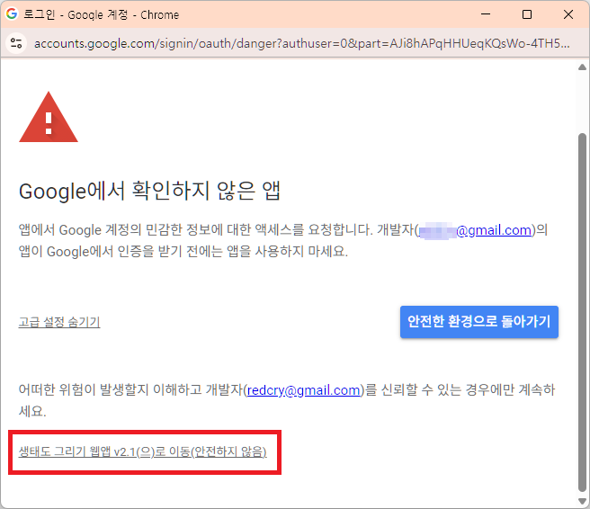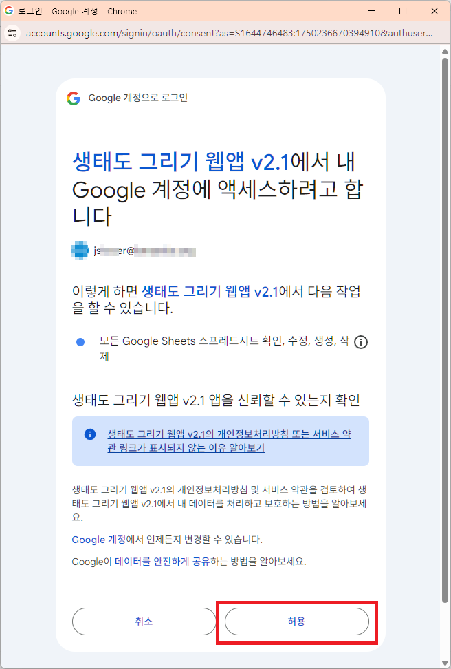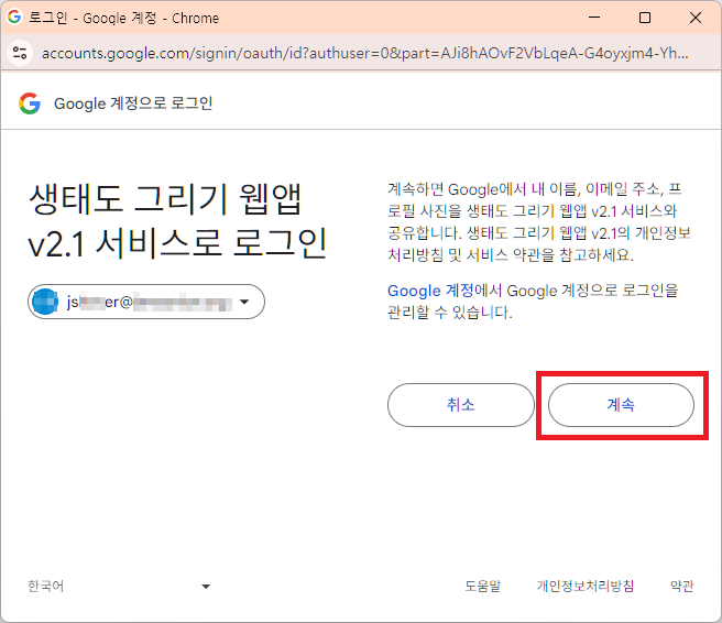 참고로 처음 사용시, 사용자의 구글 계정 ID를 확인합니다.