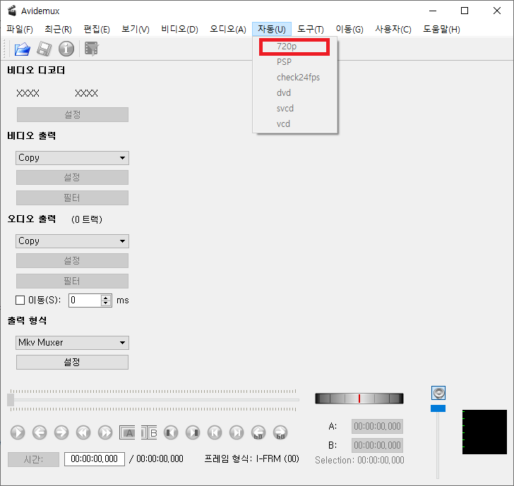 Avidemux에서 직접 작업을 하려면,