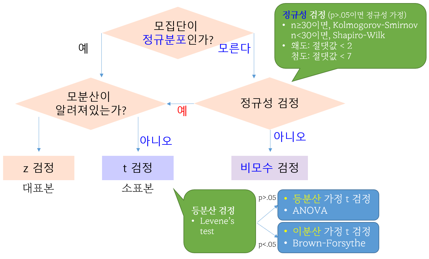 1. 분석방법을 선택하는 두 가지 기준, 첫 번째: 모수통계, 비모수통계