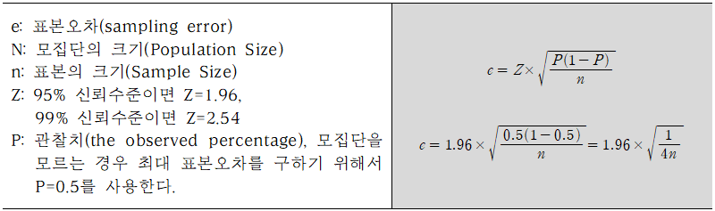 표본오차 = 오차한계(margin of error) = 최대허용오차 = 오차범위 = 표집오차