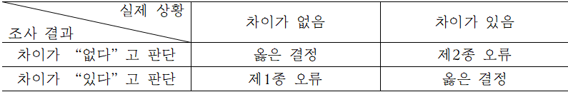 이를 영가설의 개념으로 다시 구성해보면 다음과 같다.