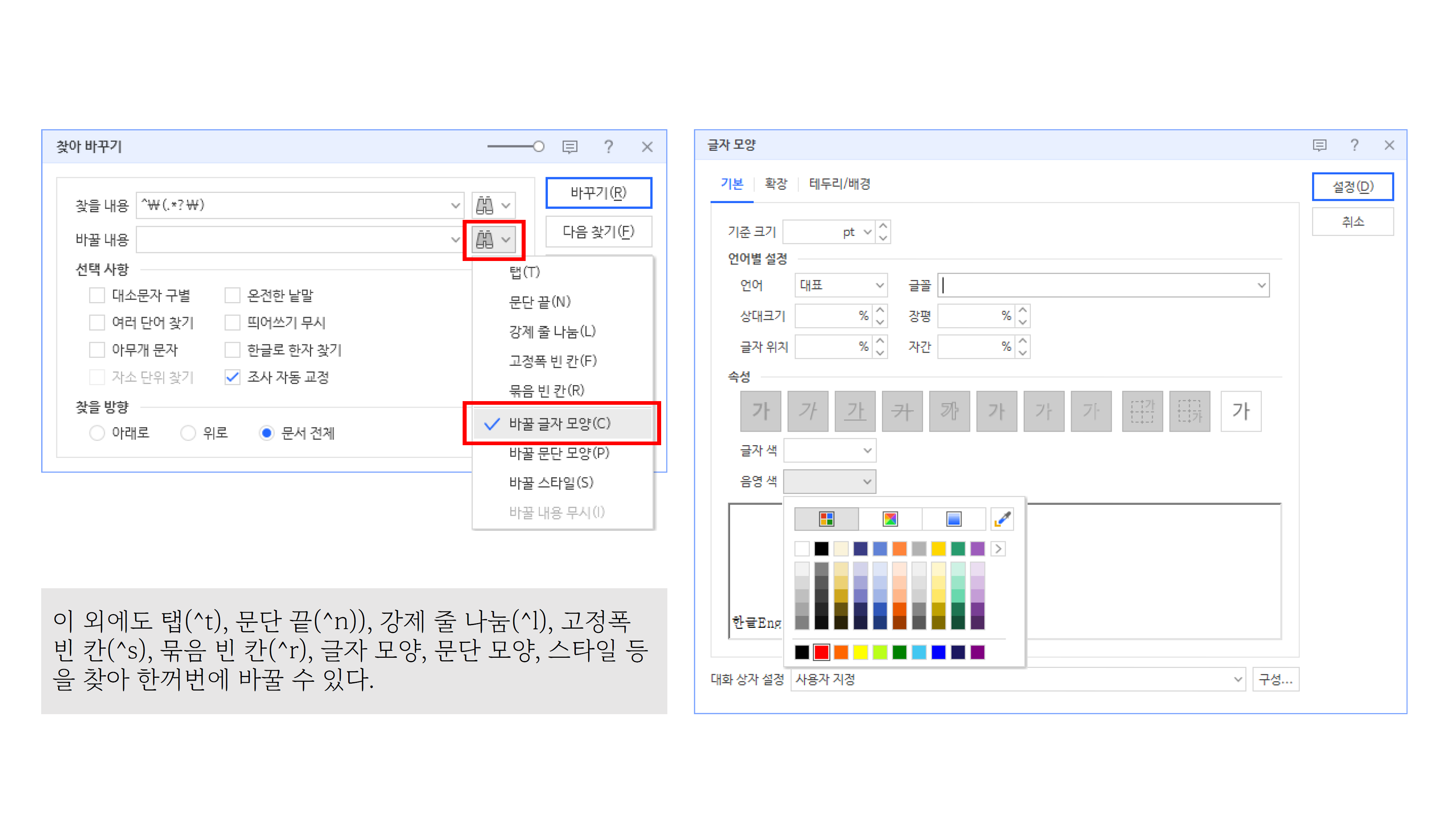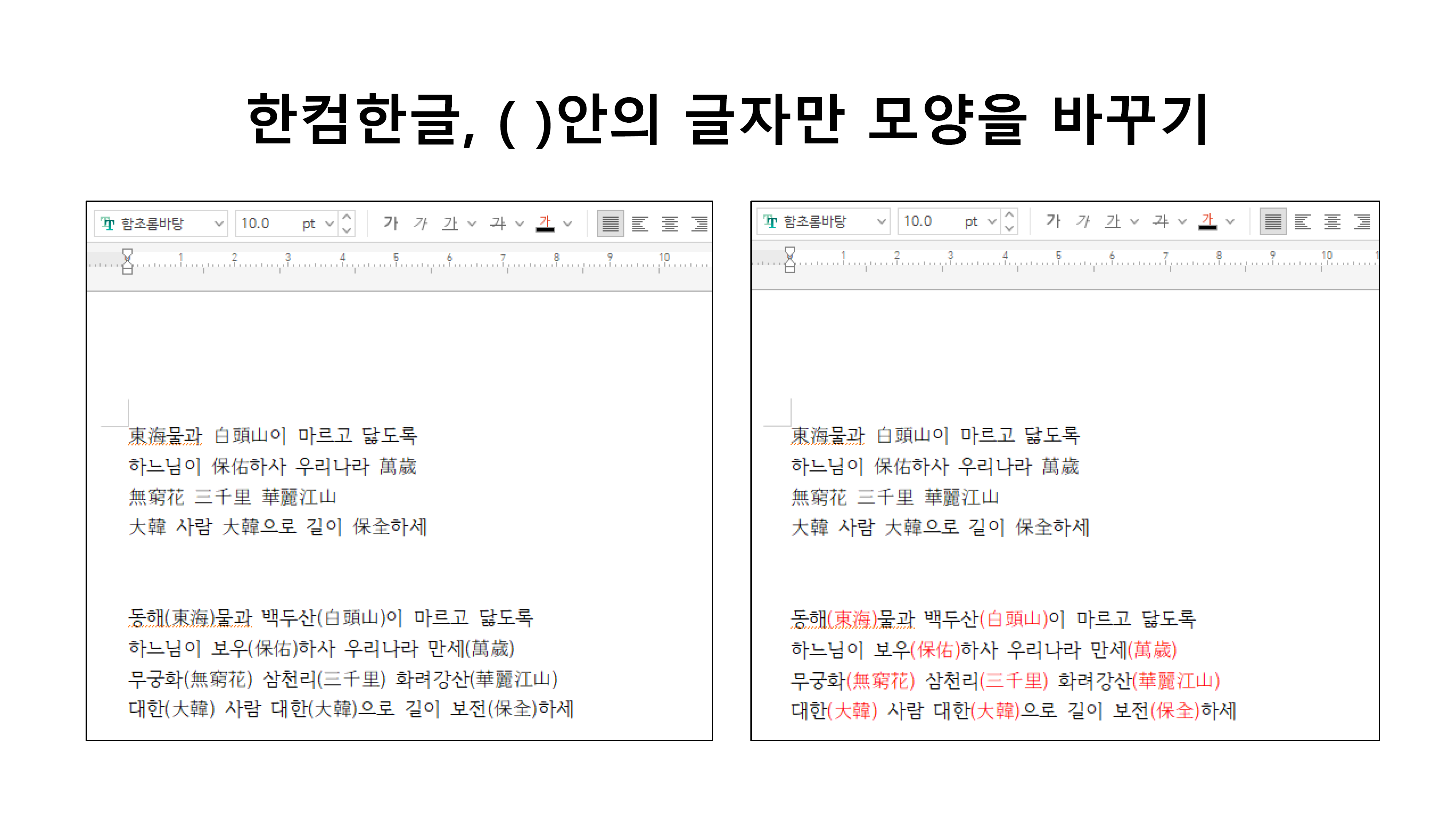 한글, ( )안의 글자만 모양 바꾸기