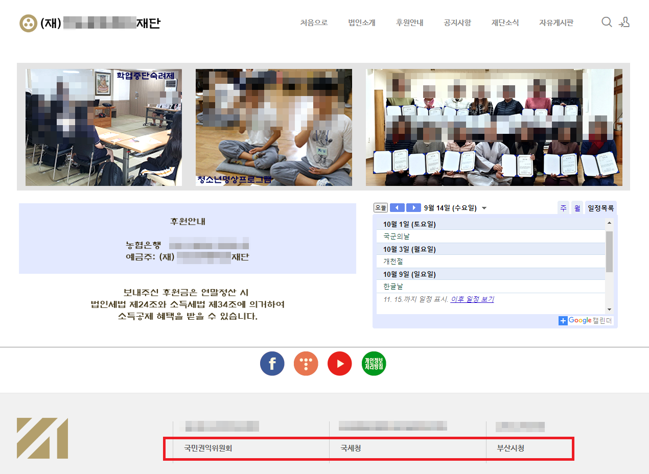3. 공익위반사항 관리ㆍ감독 기관인 국민권익위원회, 국세청, 주무관청 중 1개 이상의 곳의 홈페이지를 연결해야합니다.