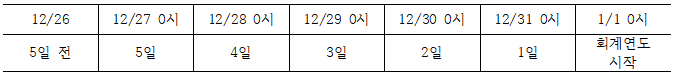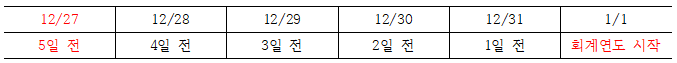 그렇다면 회계연도가 1월 1일에 시작하니까, 그로부터 5일 전은 언제가 될까?
