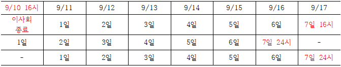 9월 10일 이사회 당일을 포함하면 16일까지 제출해야하고, 포함하지 않는다면 17일이 제출일이 된다.