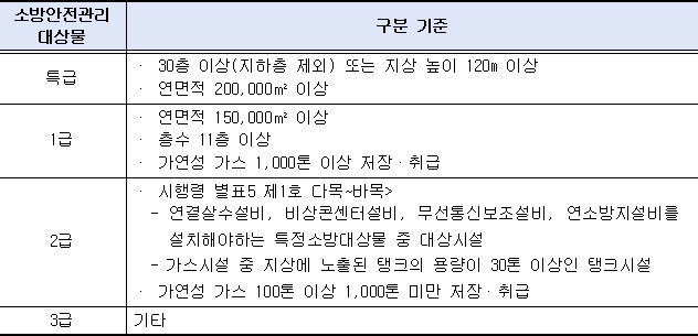 - 2021.07.09 특정소방대상물의 급수(특급, 1급, 2급, 3급)의 구분