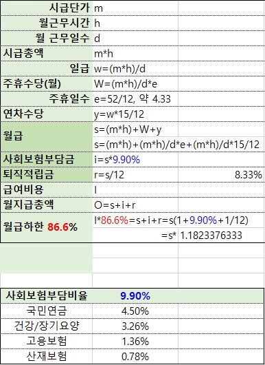 따라서 위의 추가적인 요소를 고려해 86.6%를 맞춘다면 시급은 조금더 낮아질 것이다.