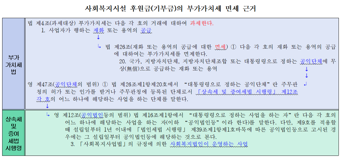 - 2023.07.27 사회복지시설 후원금(기부금)의 부가가치세 면세 근거