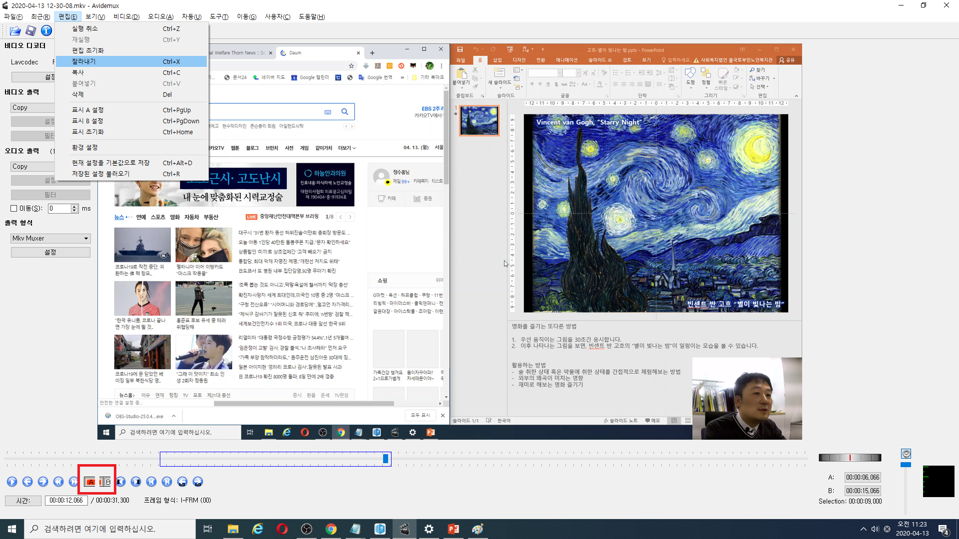 OBS studio로 찍고, Avidemux로 편집하고~