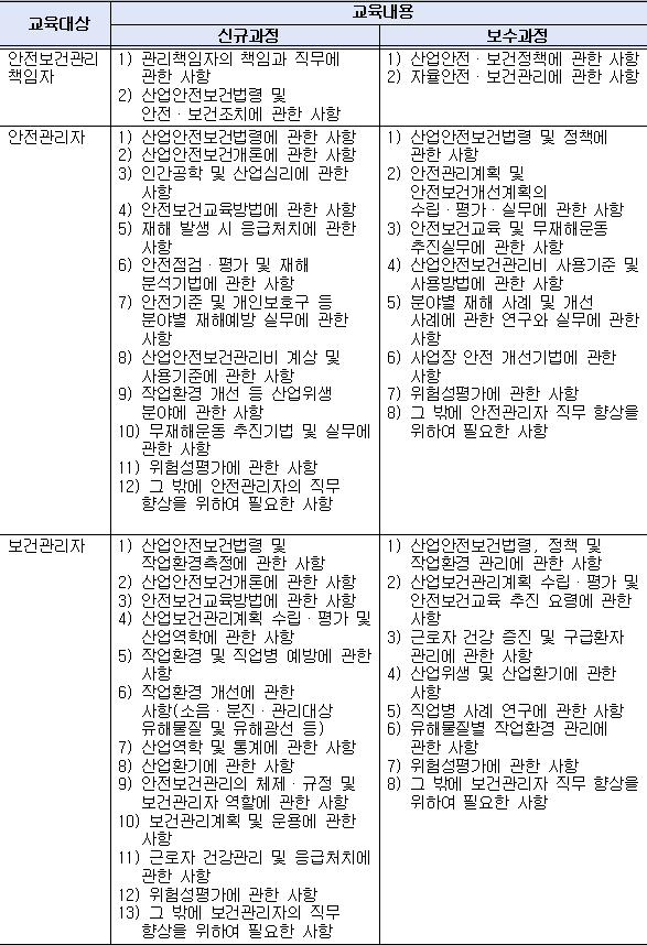 2. 교육대상: 안전보건관리책임자 등(법 제32조)